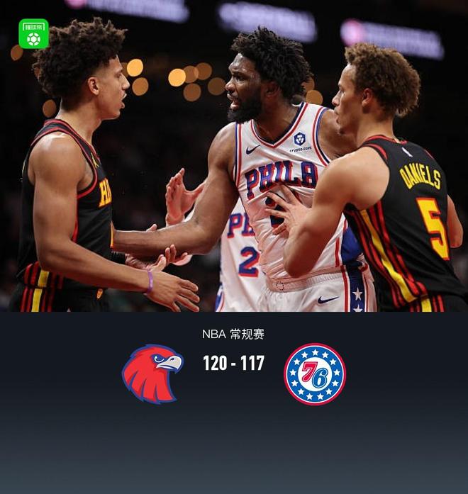 亚特兰大老鹰戴森-丹尼尔斯27分10板3助,奥孔古20分15板4助;费城76人保罗-乔治35分4板3助,VJ-埃奇库姆26分6板2助。