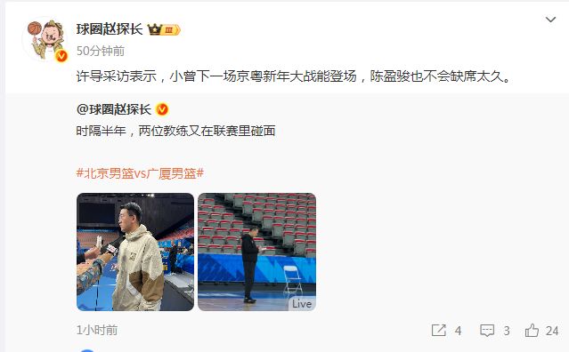 至于陈盈骏在此前击败新疆的比赛遭遇鼻骨骨折,且根据多位媒体人透露,陈盈骏已经接受了鼻部手术,许利民表示陈盈骏不会缺席太久的比赛。