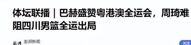 澎湃新闻(体坛联播|巴赫盛赞粤港澳全运会,周琦难阻四川男篮全运出局2025.11.12)