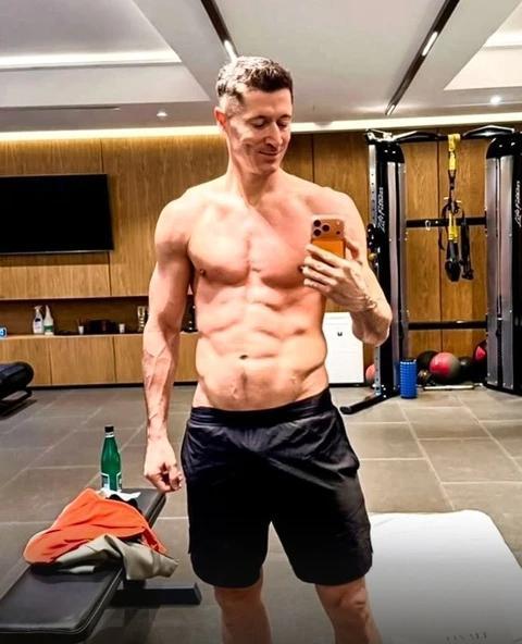 37岁的莱万多夫斯基在社交媒体上分享了一组最新健身房照片