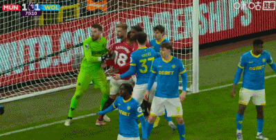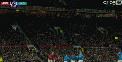 第45分钟,齐尔克泽头球乌龙助攻,克雷伊奇头球破门扳平!曼联1-1狼队