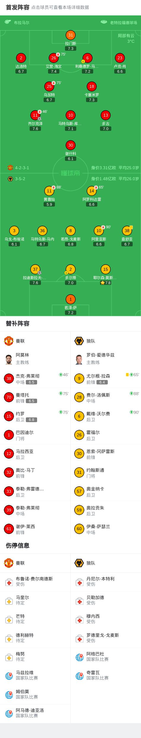 北京时间12月31日,英格兰足球超级联赛第19轮,曼联坐镇主场迎战狼队。上半场,艾登-海文抢断后齐尔克泽打门折射入网,谢什科头球攻门中柱,齐尔克泽乌龙助攻克雷伊奇头球破门扳平;下半场,莫斯克拉头球解围差点乌龙,克雷伊奇捅射被拉门斯扑救,谢什科打门被扑后多古补射破门被判越位进球无效。最终以1比1握手言和。